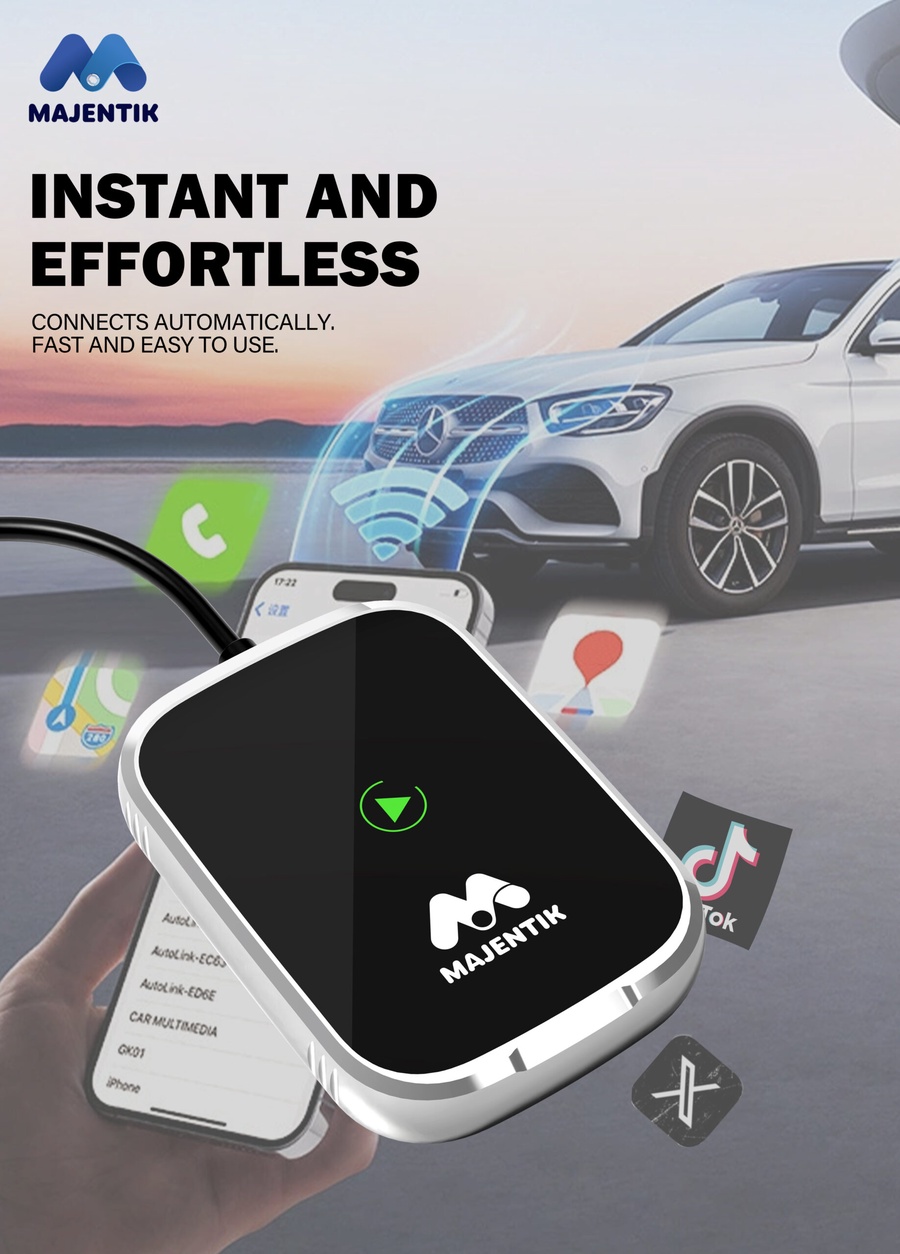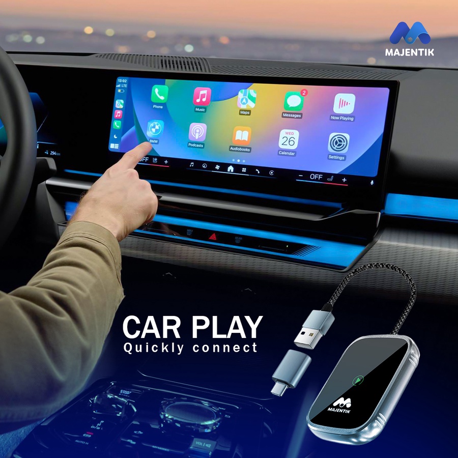 المحول يقوم بتحويل الاتصال السلكي إلى لاسلكي تلقائيًا دون أي إعدادات معقدة كل ماعليك هو توصيله بشاشة السيارة عن طريق مدخل الUSB او الTYPE C .